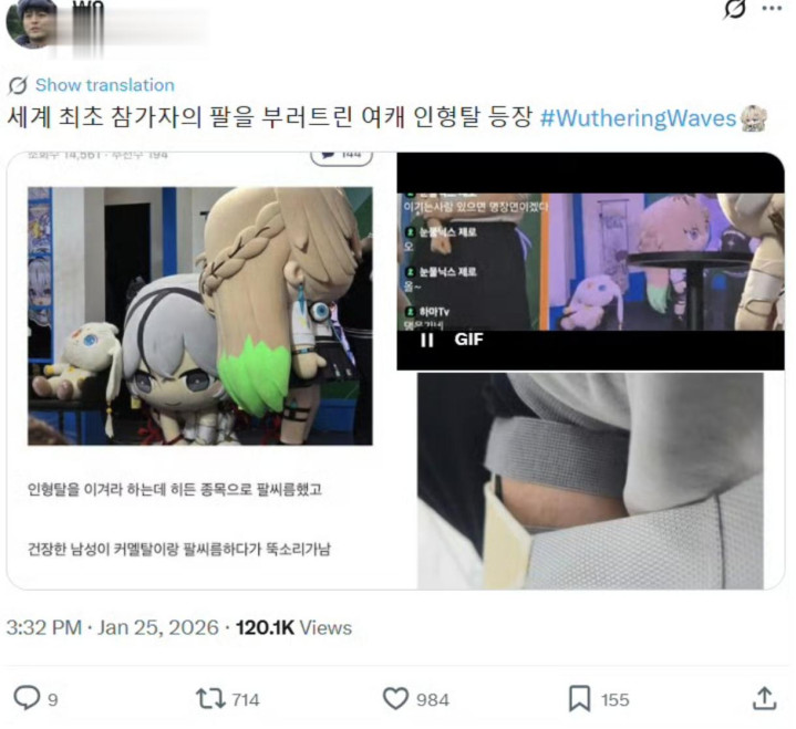 事情的经过就是在互动环节中,当韩国线下活动粉丝准备与“大傻椿”比赛扳手腕时,本以为双方势均力敌,但随着咔嚓一声,粉丝的手臂直接在力量比拼下脱臼。